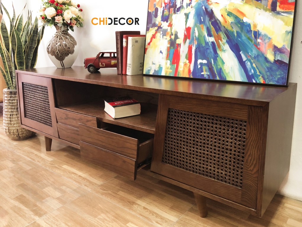 Ngoài ra, Kệ Tivi Tivi Cánh Mây Luxury với thiết kế 2 màu: màu gỗ tự nhiên (Natural), màu nâu (màu gỗ óc chó) giúp khách hàng dễ lựa chọn trong việc phối màu với tông màu của ngôi nhà và các đồ dùng khác.