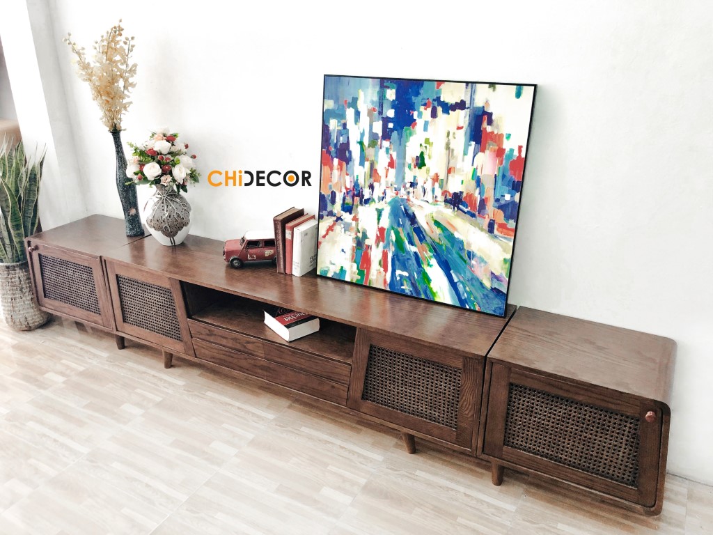 Ngoài ra, Kệ Tivi Tivi Cánh Mây Luxury với thiết kế 2 màu: màu gỗ tự nhiên (Natural), màu nâu (màu gỗ óc chó) giúp khách hàng dễ lựa chọn trong việc phối màu với tông màu của ngôi nhà và các đồ dùng khác.